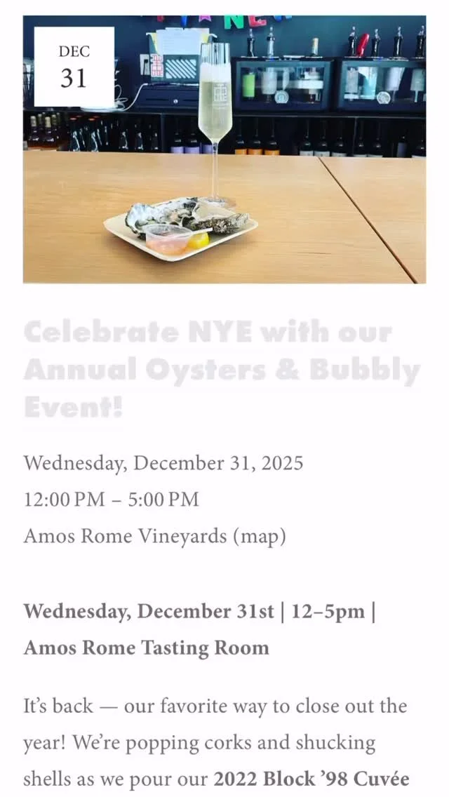 Santa is coming to town…and he’s starting the season at Amos Rome Vineyards! Join us on Saturday, November 29th from 2-5pm for an afternoon of Santa visits, s’mores, cocoa, and of course, wine! We’ll have supplies for your kiddo to write their Santa wish list and all of the fire pits will be going for warmth and perfect winter vibes. Don’t miss out on this super-fun family-friendly afternoon!
